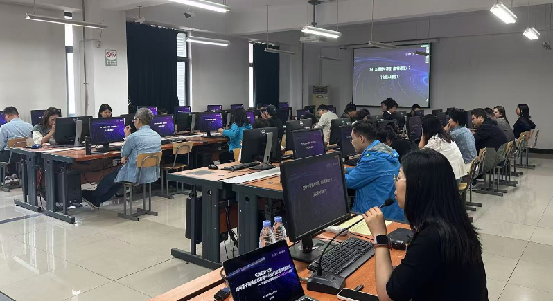 培训由特约“雨课堂”培训师主讲,培训采用讲练结合的形式围绕AI课程建设、AI教学应用两个方面逐步展开。教师们培训热情高涨,认真聆听讲解、积极实操演练,并就重、难点及实际教学中遇到的问题积极与培训师进行了深入交流与探讨。
