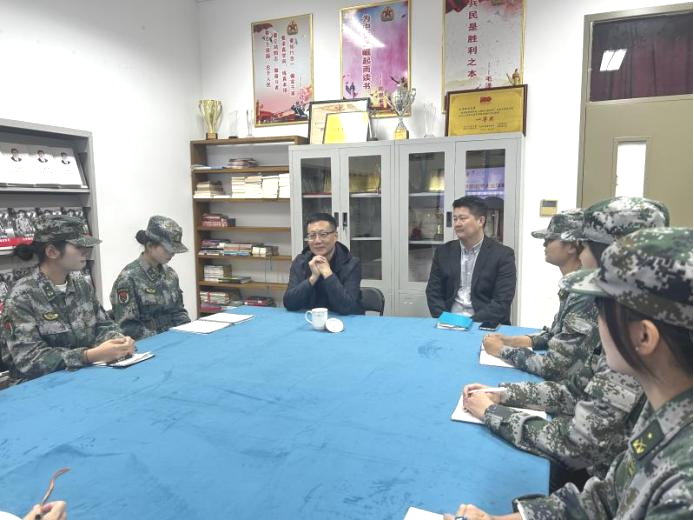 活动中,杨泽利老师结合我校国防教育实践,将抗战精神与青年责任紧密联结,阐释伟大抗战精神深刻内涵,厚植青年学子强国有我精神根脉,为同学们讲述了一场跨越时空的思政大课;在国防教育展厅,他指导讲解员们分组模拟国防教育展厅讲解场景,从站位、讲解、手势到互动问答,逐一打磨细节;在座谈交流中,他围绕怎样提升自身政治理论水平,如何平衡训练与个人学习任务等问题,为国旗护卫队队员们解开成长困惑。